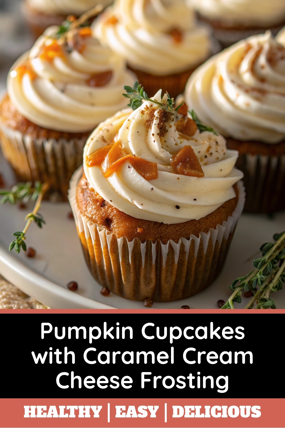 These Pumpkin Cupcakes with Caramel Cream Cheese Frosting deliver a perfectly spiced and tender crumb that feels incredibly moist. Each bite releases a warm, fragrant aroma of cinnamon, nutmeg, and ginger, which beautifully complements the earthy sweetness of real pumpkin puree. The cake itself is exceptionally soft and airy, almost melting on your tongue while providing a subtle, satisfying density. Then comes the crowning glory: a luxuriously creamy and tangy cream cheese frosting. This frosting is swirled with rich, buttery caramel, creating a sweet and slightly salty contrast that is utterly irresistible. The overall experience is a harmonious blend of autumnal warmth and indulgent sweetness, making these cupcakes a true sensory delight. Because the frosting is so velvety and smooth, it pairs flawlessly with the delicate spice of the pumpkin cake. You will love the way the flavors evolve, starting with the spiced cake and finishing with the decadent caramel cream cheese finish. These Pumpkin Cupcakes with Caramel Cream Cheese Frosting are a masterpiece of texture and taste.