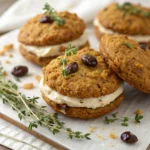 Perfect for a cozy afternoon treat or a festive holiday gathering, this recipe for pumpkin oatmeal cream pies – olives + thyme delivers that classic, beloved flavor combination in a perfectly portable form. The chewy oatmeal cookies are packed with warm spices and real pumpkin, creating a perfect contrast to the sweet, tangy cream that holds them together.