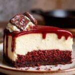 This stunning Red Velvet Cheesecake combines the rich cocoa flavor and vibrant color of classic red velvet with a creamy, tangy cheesecake layer for an unforgettable dessert experience.