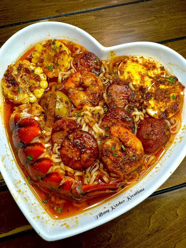 A bold twist on traditional ramen featuring shrimp, crab legs, and smoked sausage with Cajun-inspired flavors and a flavorful seafood broth.