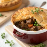 This Stout Braised Beef Pot Pie is the ultimate upgrade, featuring succulent beef slow-cooked in a robust stout gravy until it’s fall-apart tender, all nestled under a flaky, golden pastry crust. It’s the perfect centerpiece for a cozy dinner that feels both rustic and incredibly sophisticated.