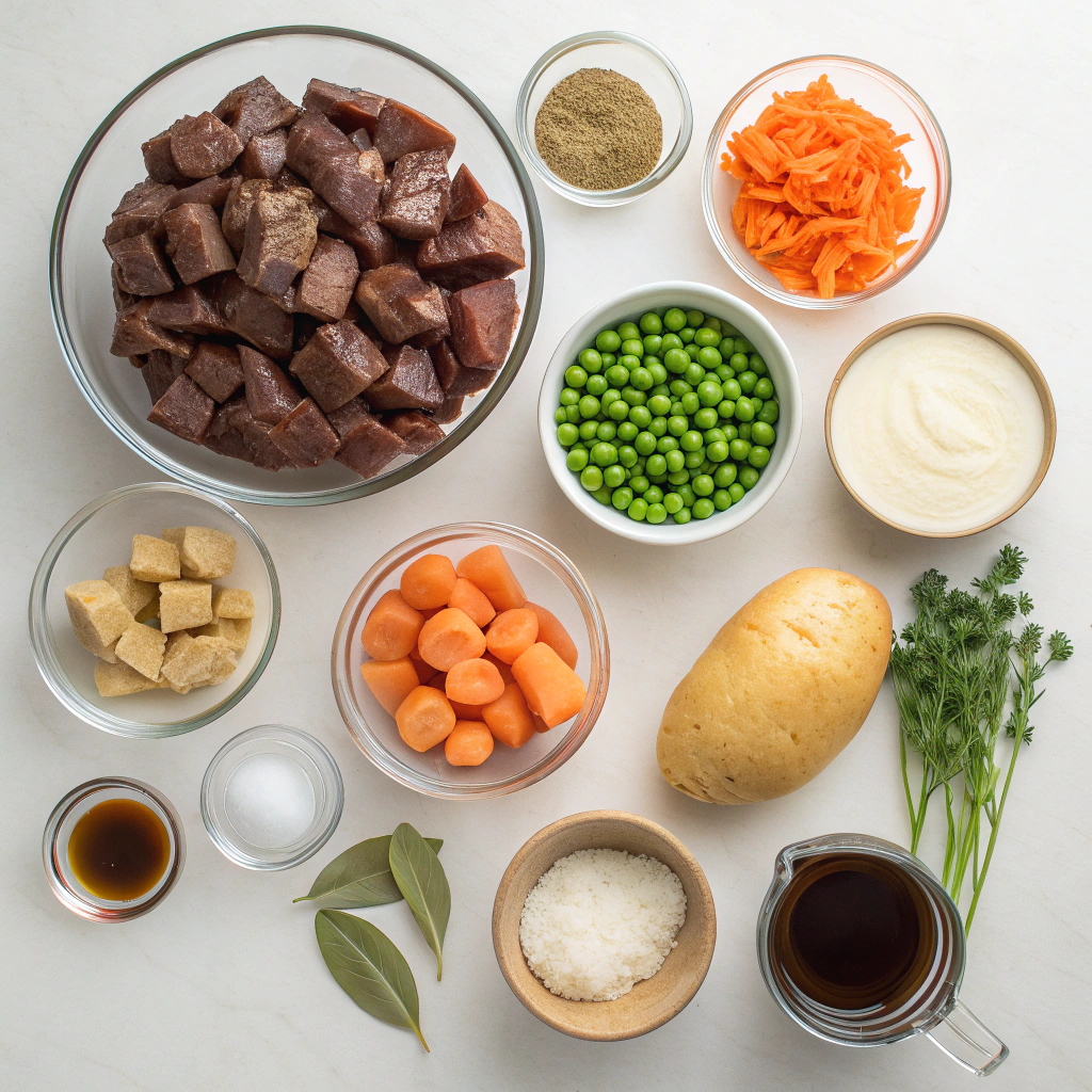Cut 2 pounds of beef chuck into 1-inch cubes and season generously with salt and pepper. Dice one large onion, two carrots, and two celery stalks into uniform pieces to ensure even cooking.