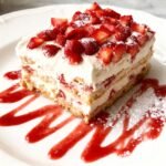 A light, no-bake layered dessert with cream cheese mousse, fresh strawberries, and graham crackers, chilled overnight for a creamy, fresh strawberry cheesecake flavor.