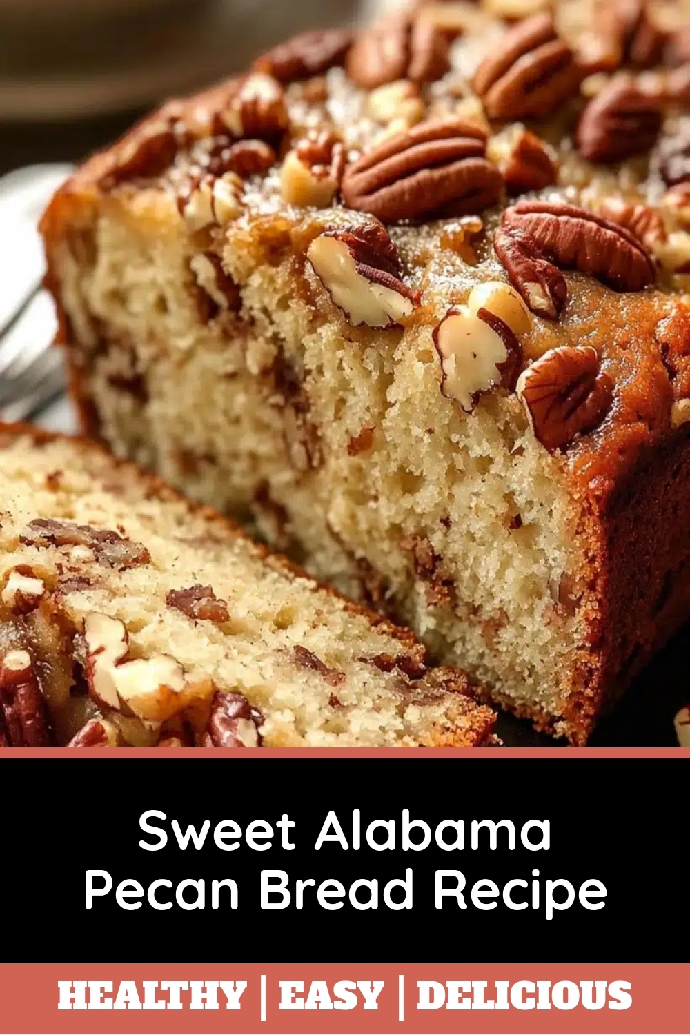 Sweet Alabama Pecan Bread Recipe shines when served warm, allowing its rich buttery aroma to fill the room. For a cozy brunch, slice it thick and arrange it on a rustic wooden board with a pat of softened butter on the side. If you’re hosting a holiday gathering, elevate the presentation by drizzling a light honey glaze over the top and garnishing with extra toasted pecans. This dish also makes a delightful addition to casual dinners—simply pair it with a scoop of vanilla ice cream for a quick dessert. No matter the occasion, Sweet Alabama Pecan Bread Recipe always brings a touch of Southern charm to the table.