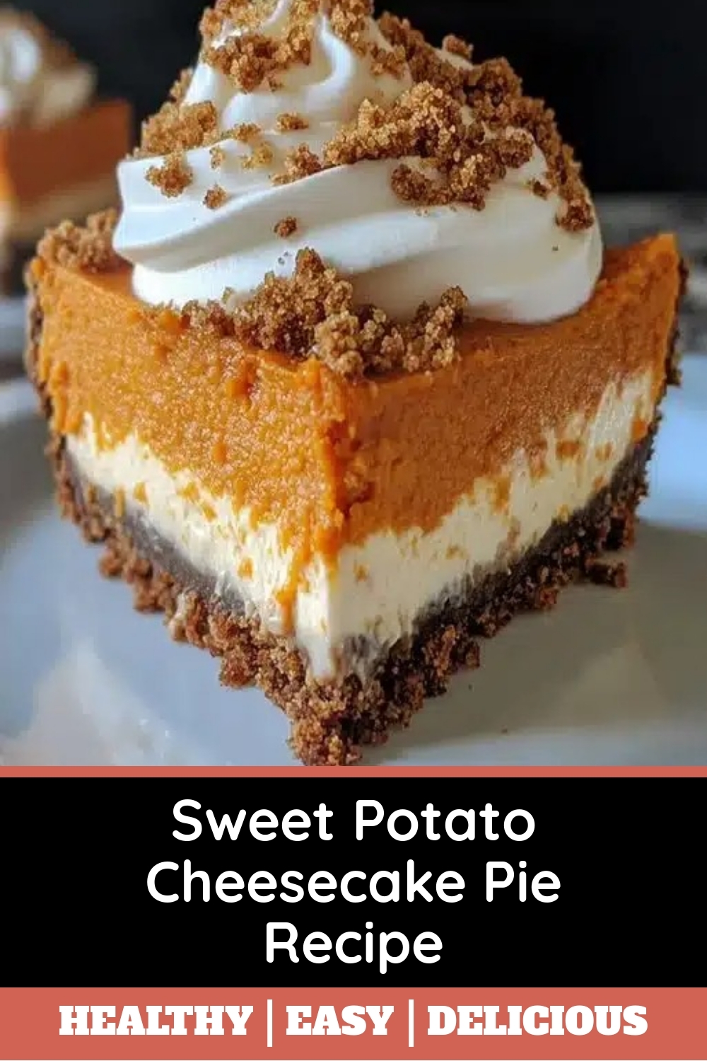 A creamy and decadent sweet potato cheesecake pie with a spiced graham cracker crust.