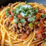 This savory taco spaghetti combines perfectly seasoned ground beef with tender pasta and melted cheese for a comforting, flavor-packed meal that comes together in minutes.