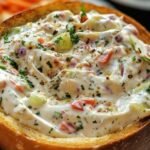 This vibrant Veggie Cream Cheese delivers a fresh, creamy texture and a delightful crunch from the colorful chopped vegetables, making it a perfect spread for bagels or crackers.