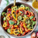 This vibrant Viral Sweet Pepper Salad is a flavor explosion that lives up to its name. The combination of crisp mini cucumbers, sweet bell peppers, and a savory, spicy dressing creates an irresistible side dish or light meal that’s perfect for sharing. After testing numerous variations, I’ve found this specific balance of chili crisp and sesame dressing delivers the addictive quality that makes this recipe so popular online.