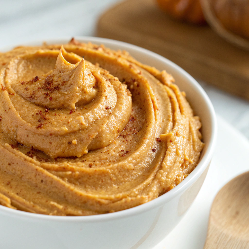 A creamy and fluffy whipped butter blended with pumpkin purée, honey, and warm fall spices, perfect for spreading on toast, muffins, pancakes, and more.