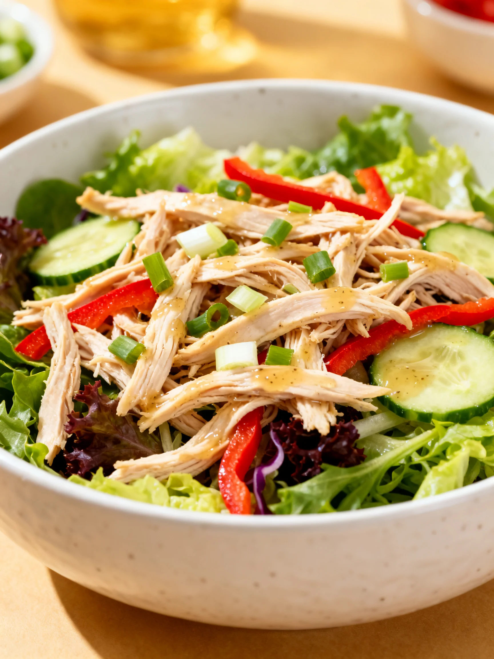 Context: This assembly-style salad takes roughly 20% less active time than a traditional Chinese chicken salad that requires frying wontons or making a complicated dressing. Since the chicken is prepared ahead, this comes together in just 15 minutes—perfect for a quick lunch or a no-cook dinner on a busy weeknight.