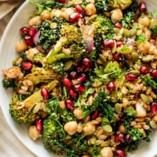 This hearty Winter Farro and Kale Salad combines the nutty chew of farro with smoky roasted vegetables, all tossed in a bright, garlicky lemon dressing for a satisfying and vibrant meal.